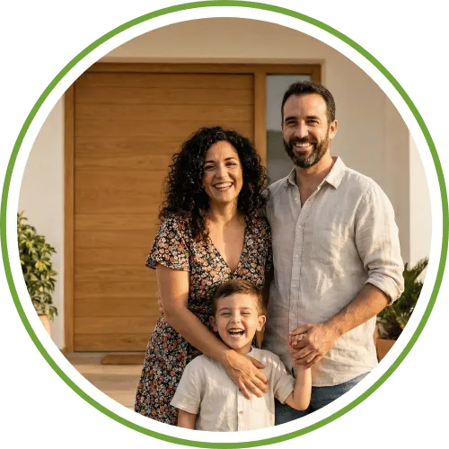 "Necesitábamos una casa más grande para los niños. Green Palm entendió nuestras necesidades y presupuesto a la primera. Nos ayudaron con toda la hipoteca y el papeleo. Estamos encantados." - Familia Rodríguez